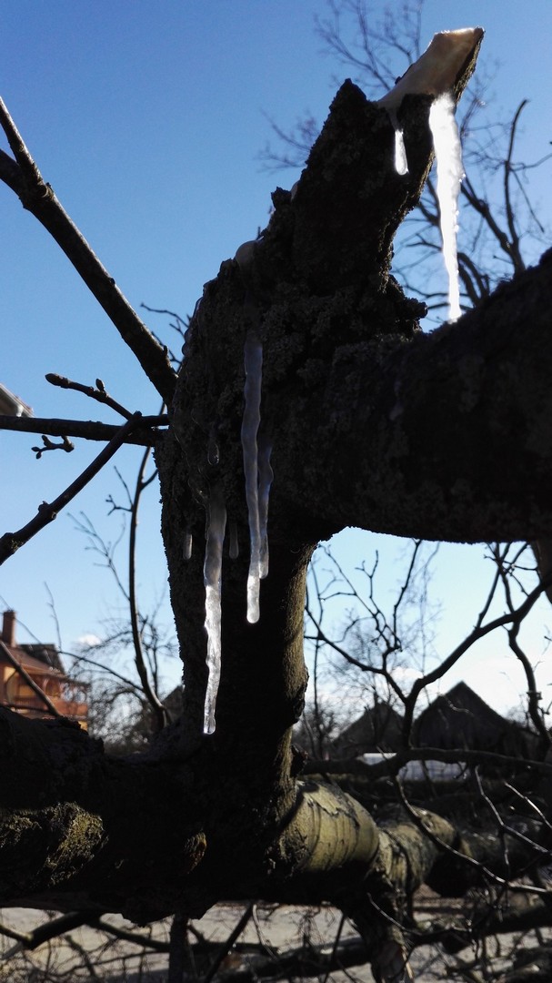 V polovině března byly skáceny tři vzrostlé stromy u Havelkova křížku vedle školy. Nebyly v dobré kondici a již několikrát z nich upadla veliká větev blízko hrajících si dětí. Jak vidíte z obrázků, bylo to za pět minut dvanáct, stromy byly docela pohnilé.